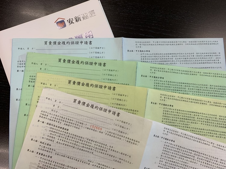 通常買賣契約書及履保申請書各為一式四份複寫聯,會由買方、賣方、承辦代書及建經公司各持一份,安新建經會確認收到複寫正本聯時,才會開始進行稅費等過戶相關出款程序,不可以由代書或其他人以拍照取代。