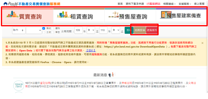 - 實價登錄網站>>內政部不動產交易實價查詢服務網